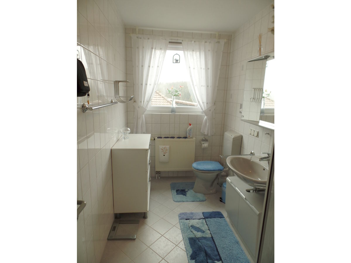 Balkon in sonniger Süd-West-Lage mit Balkon-Möbel. Eigener Gäste-Parkplatz auf dem Grundstück. Garage, falls frei. Der Garten hat eine Liegewiese mit Gartenmöbel und 2 Sonnenschirmen. Gartenpavallion. Der Garten wird nur von unseren Gästen genutzt. Sie haben von hier einen herrlichen Panoramablick auf den tiefer gelegenen Ortskern und die umliegenden Berge. Im Sommer können Sie ganz viele Schmetterlinge beobachten, die sich auf den gelb blühenden Alant-Pflanzen nieder lassen. Ab und zu verpflegen sich 3 Rehe im Garten.